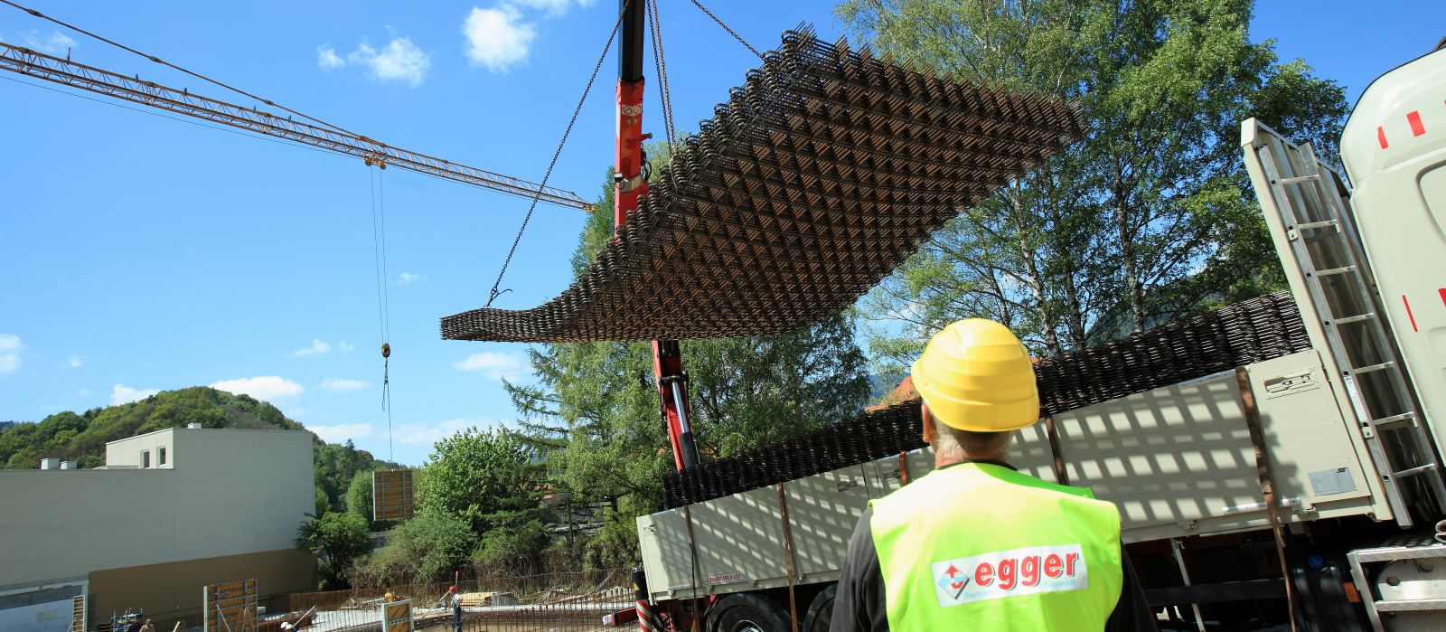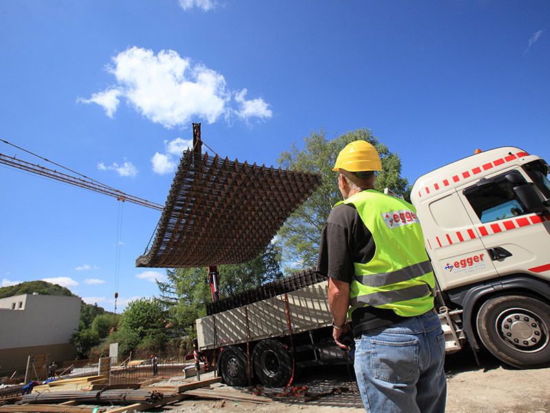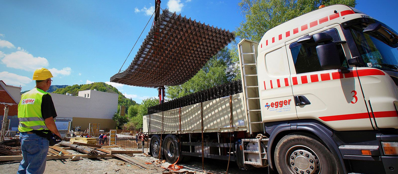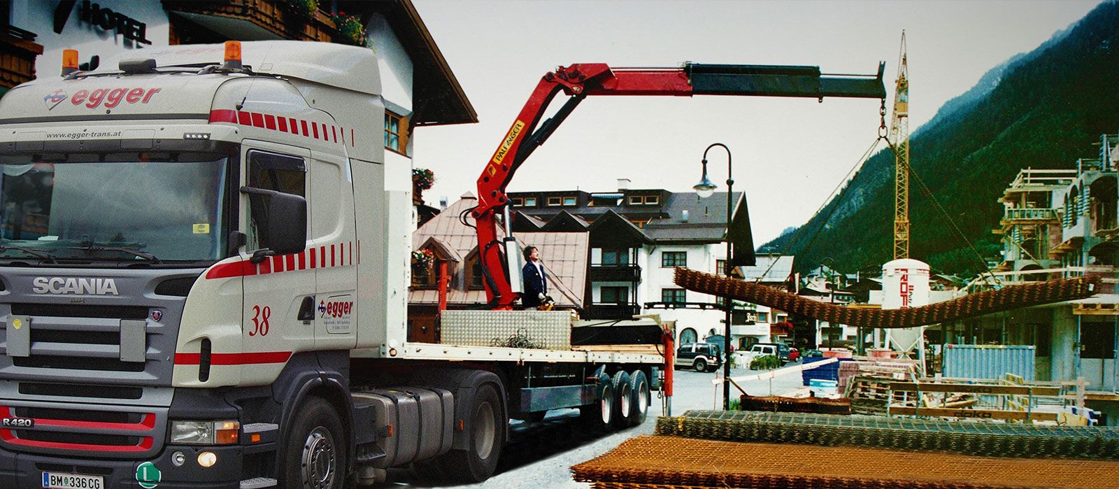 Der Kranwagen ist universell einsetzbar. Ladegüter beginnend von Konstruktionsteilen, Betonbewehrungsstählen bis hin zu palletierten Waren werden von uns transportiert und umgeschlagen.